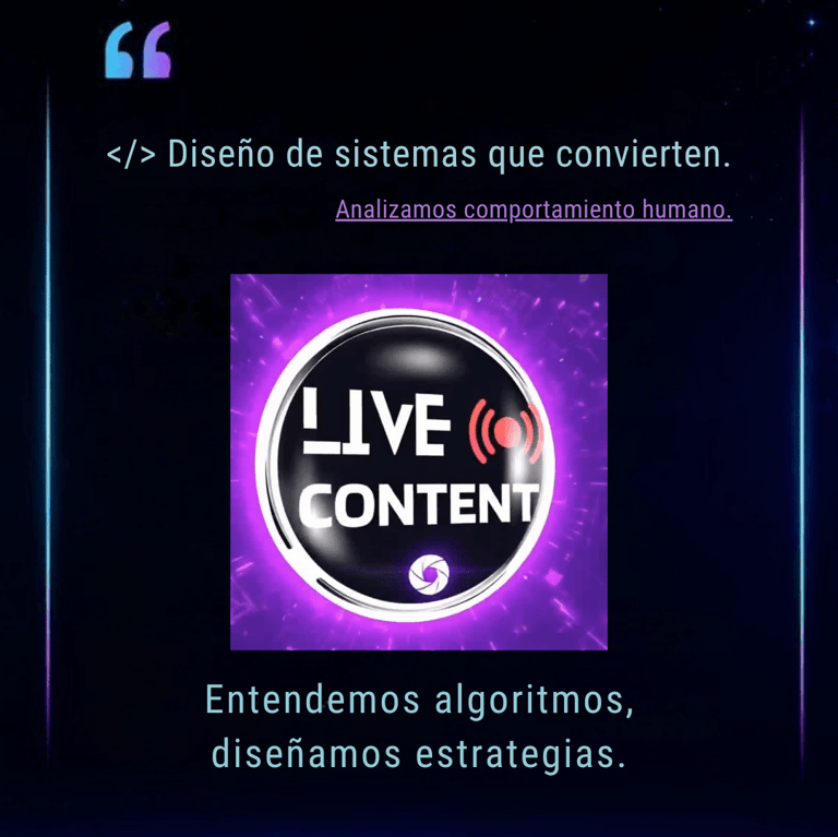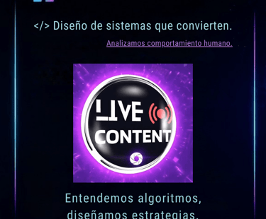 En Livecontent combinamos estrategia, diseño, tecnología y contenido con una obsesión clara: que cada proyecto tenga sentido, propósito y resultados reales, para que tus ideas pasen de TU MENTE A LA PANTALLA.