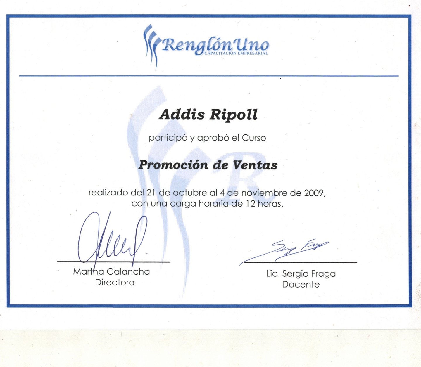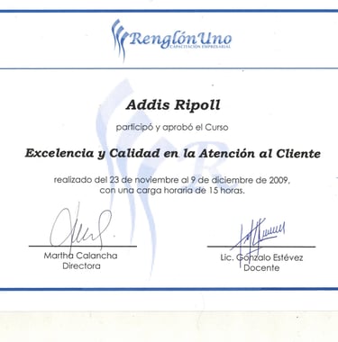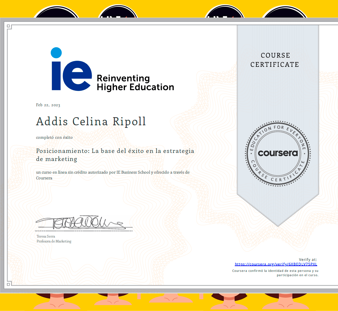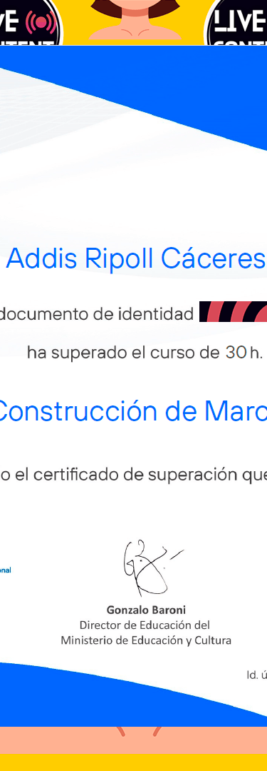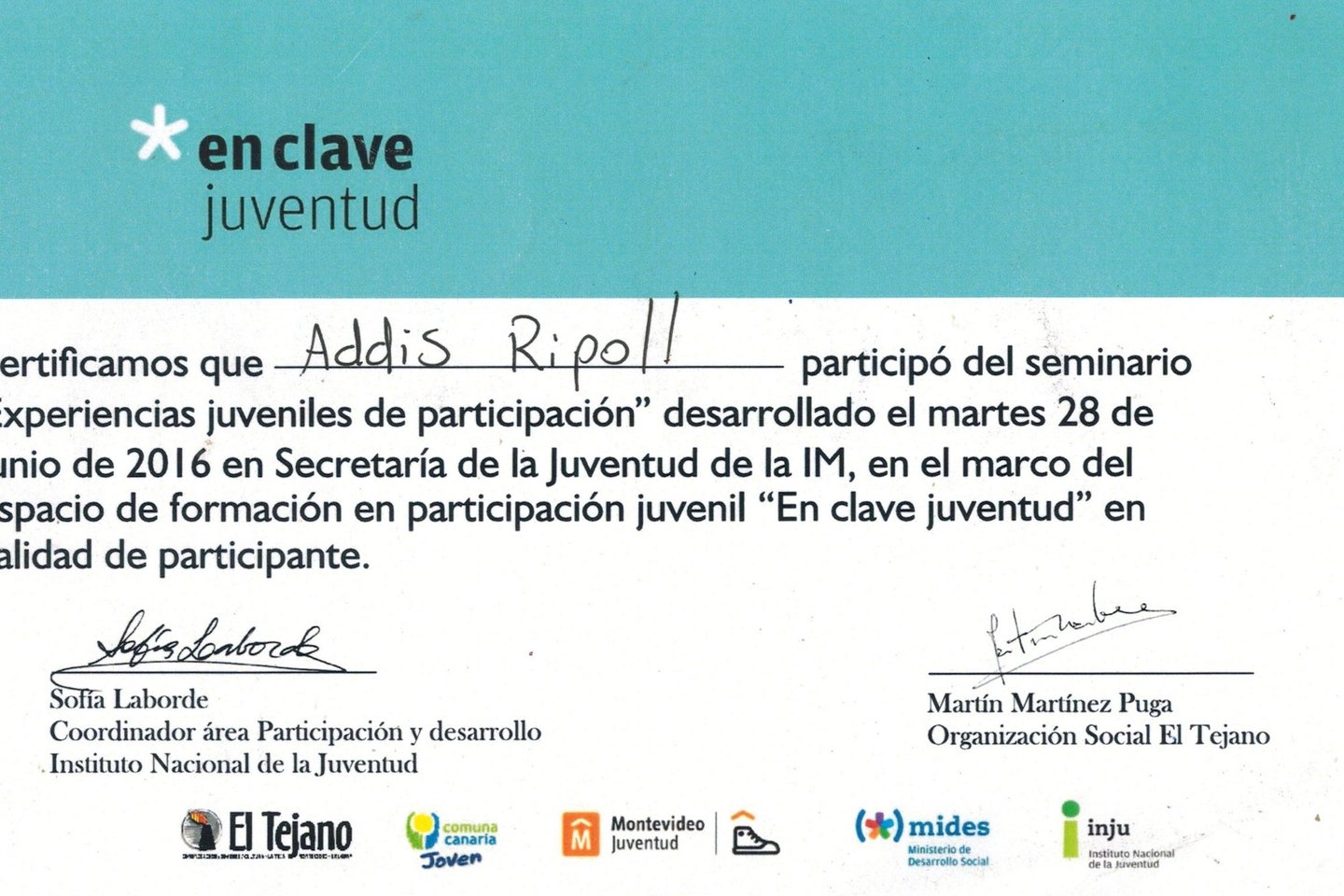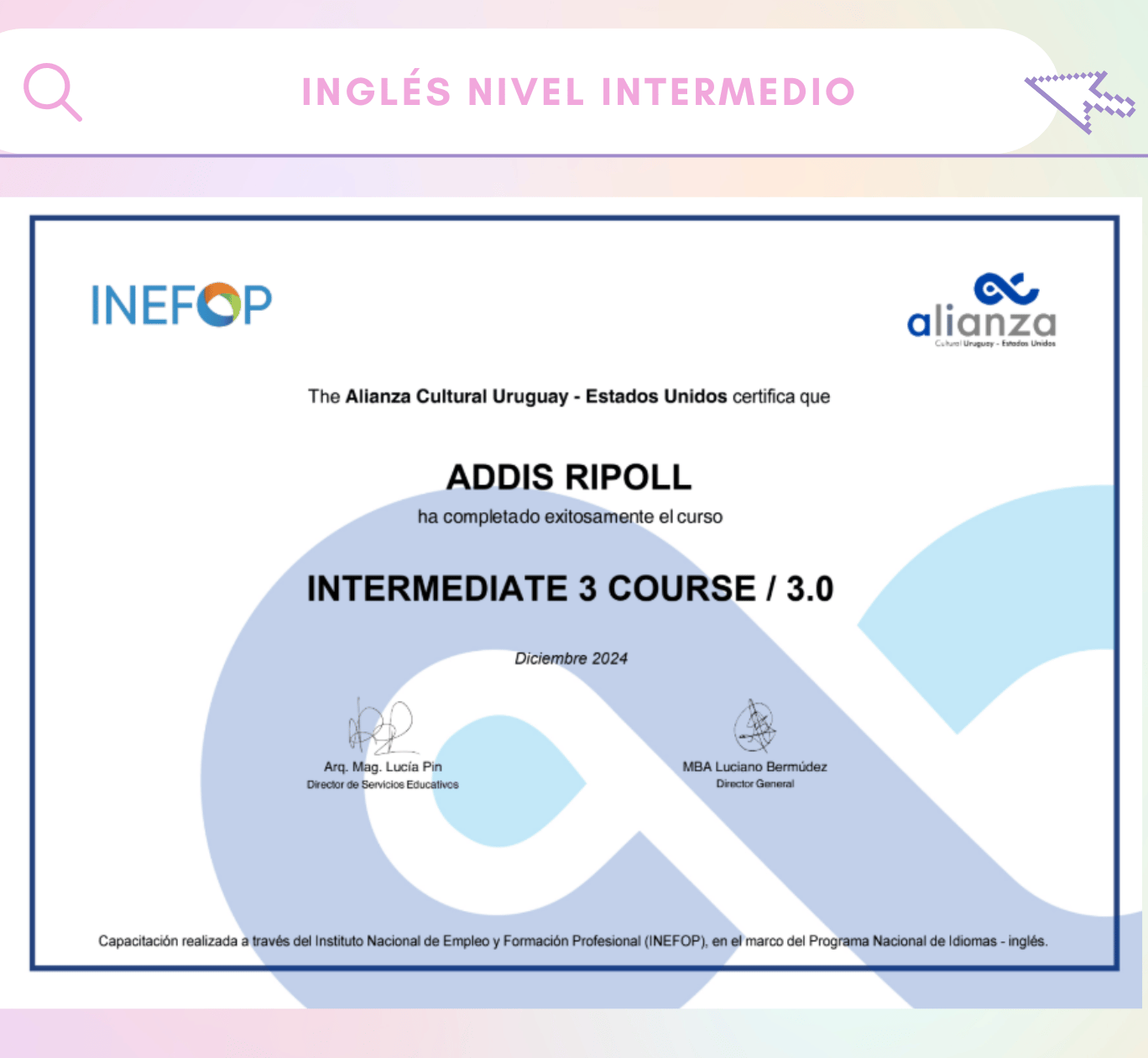 A continuación verás algunas certificaciones recientes en Marketing Digital y afines. Si quieres algo más detallado sobre mis conocimientos y experiencia debes visitar mi perfil en Linkedin: https://www.linkedin.com/in/addisripoll/