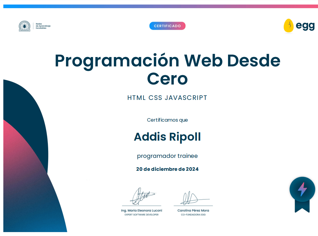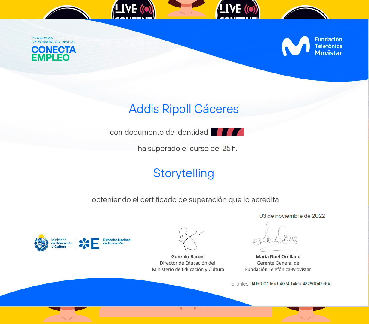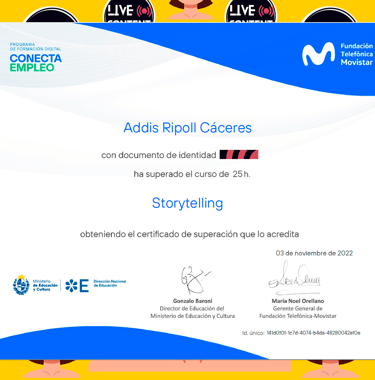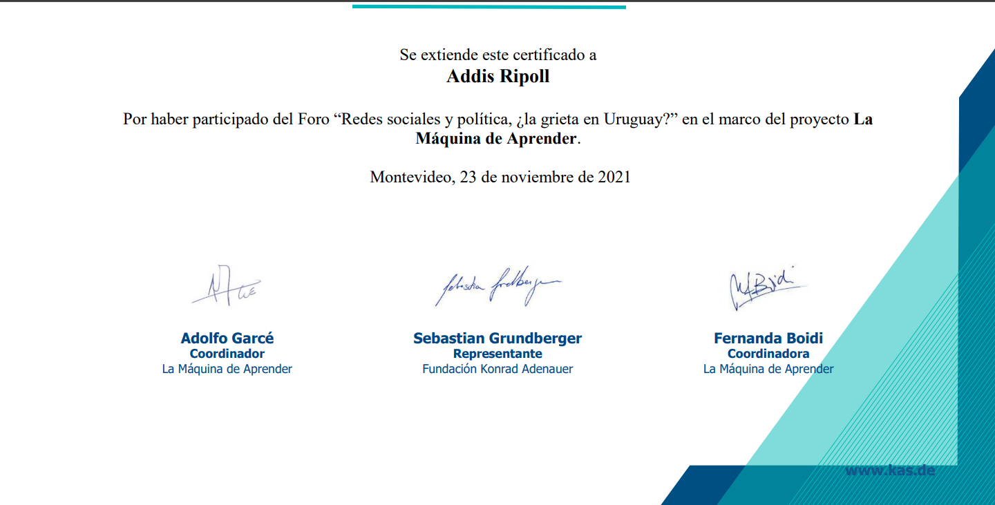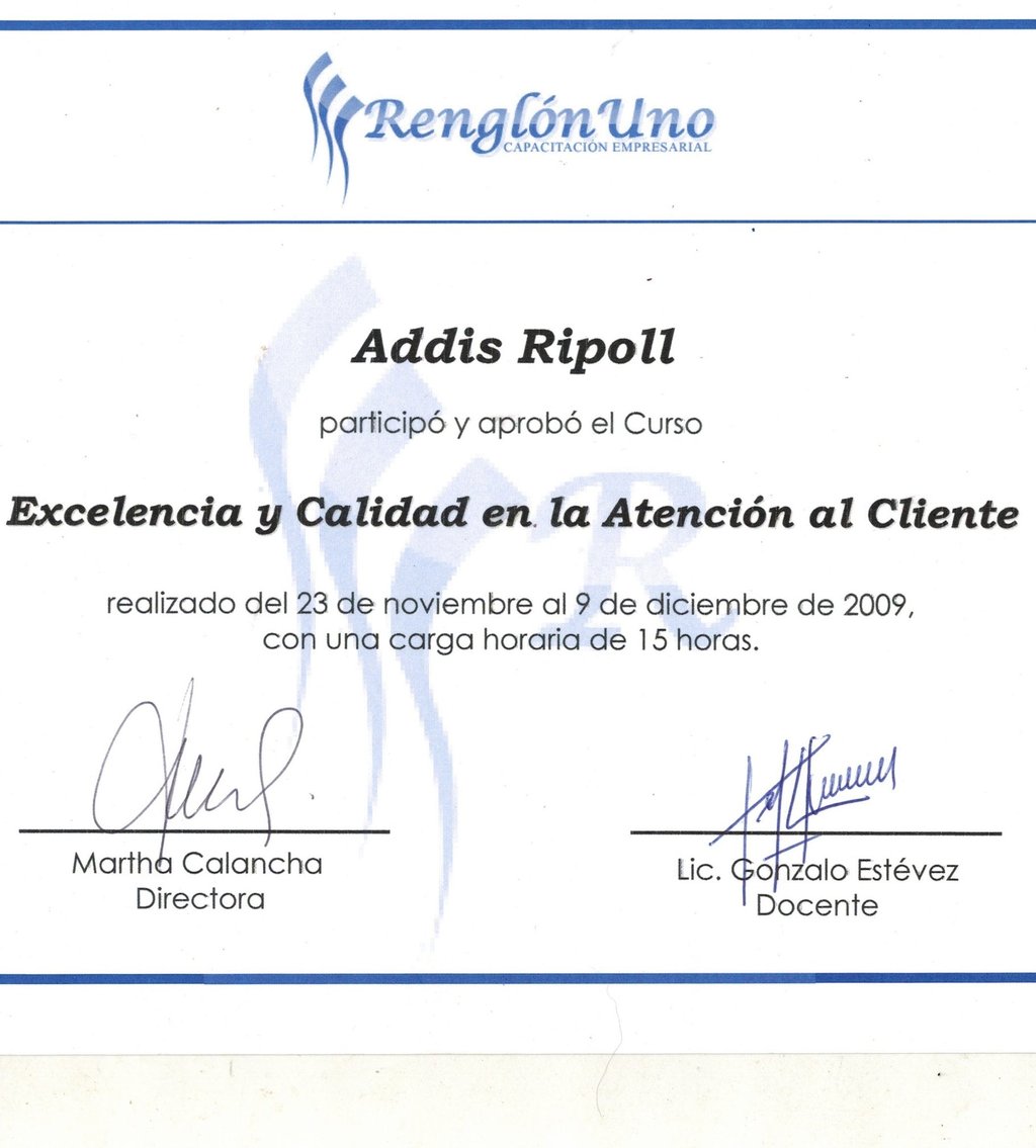 A continuación verás algunas certificaciones recientes en Marketing Digital y afines. Si quieres algo más detallado sobre mis conocimientos y experiencia debes visitar mi perfil en Linkedin: https://www.linkedin.com/in/addisripoll/